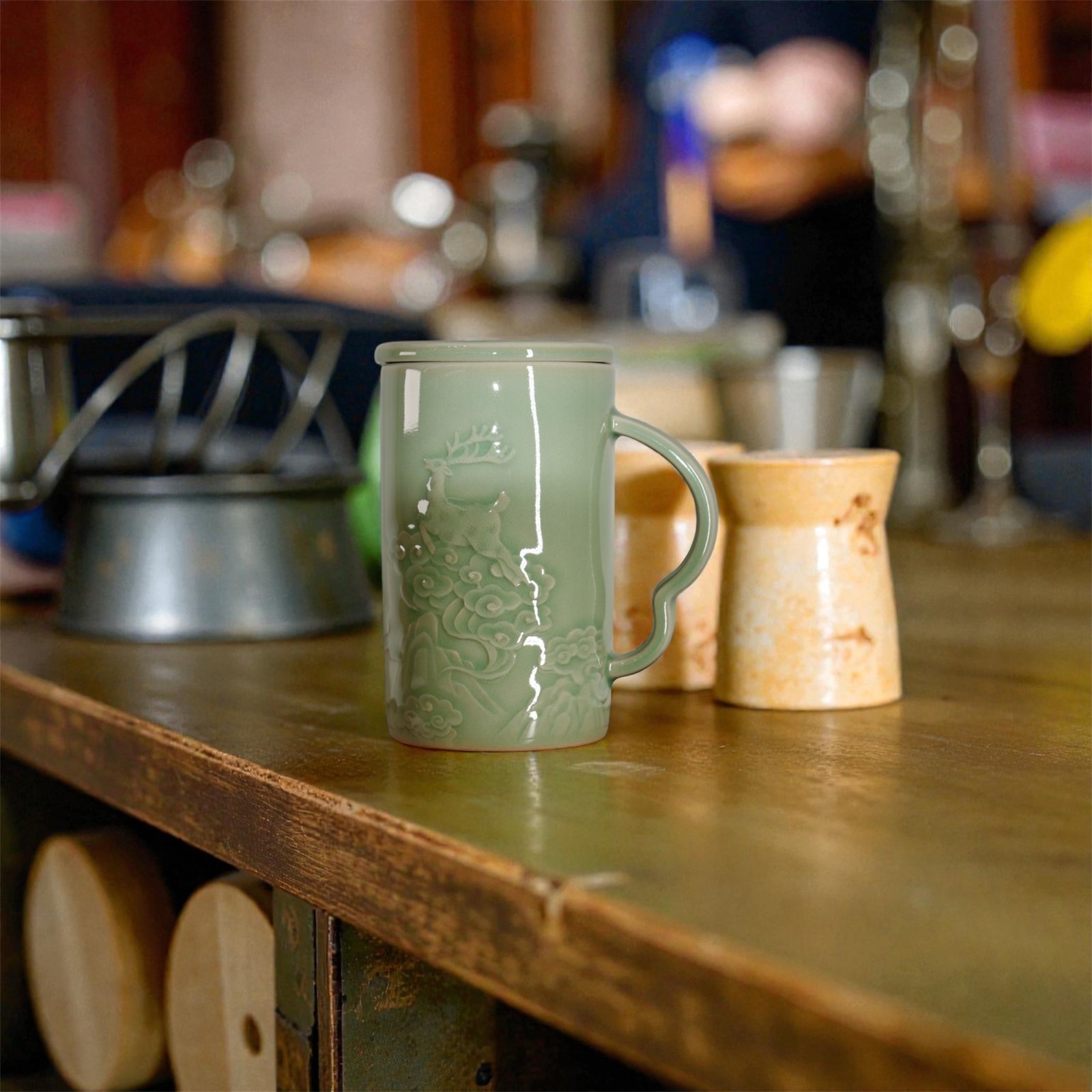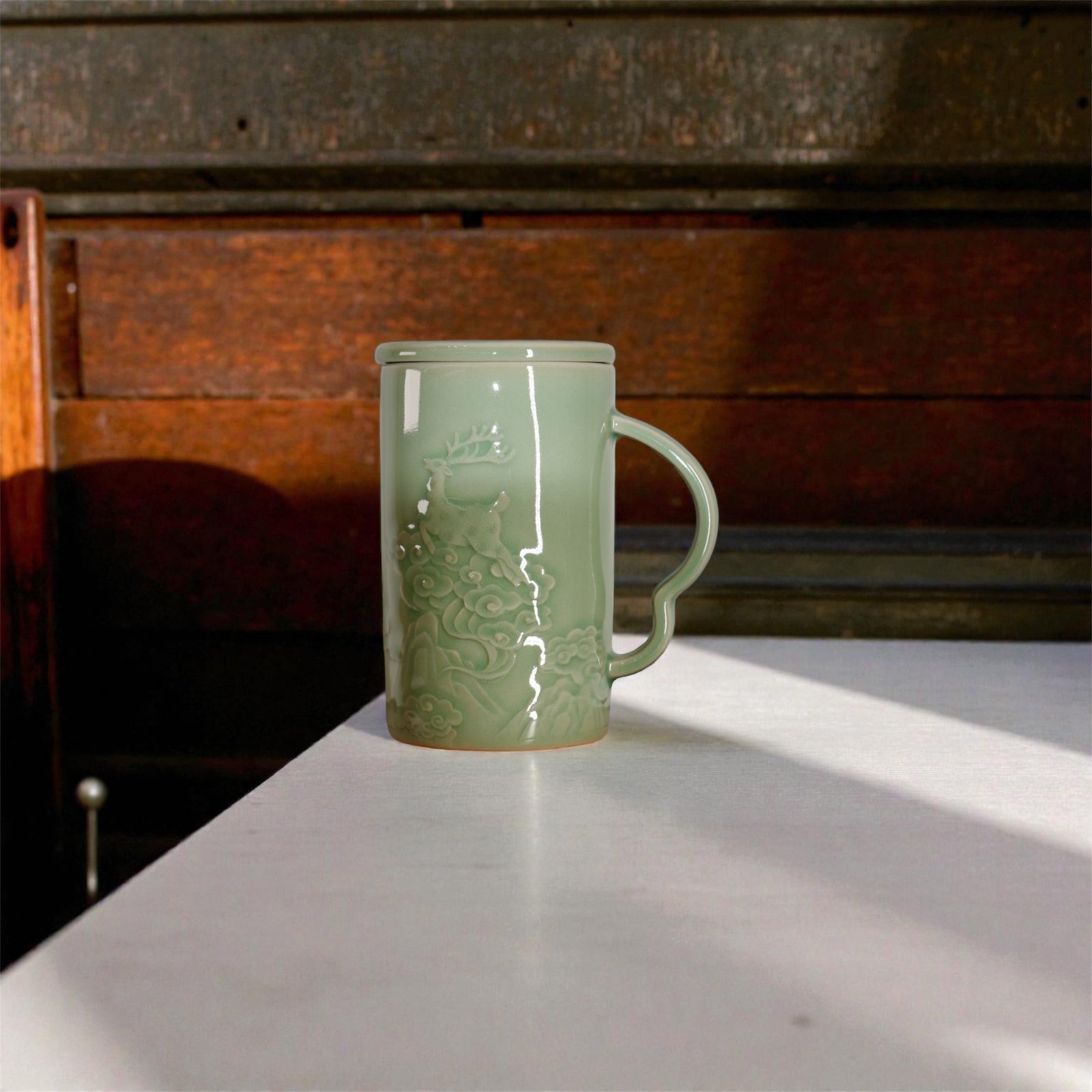 “Auspicious Deer” Yaozhou Celadon Office Mug