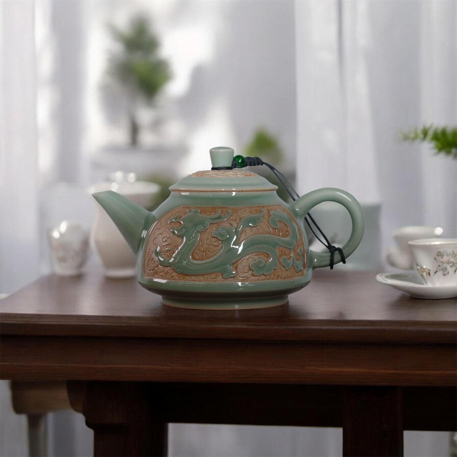 Celadon Dragon Relief Teapot